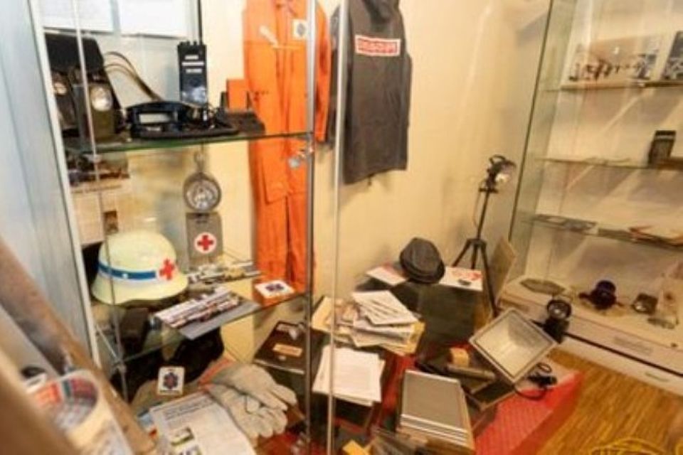 Einer der Hingucker bei der Sonderausstellung könnte die 120 Jahre alte Geislinger Krankentrage werden, die in (LED)-Licht gerückt wird. Vielleicht auch eine Fahne aus den 1950er oder -60er Jahren, die auch auf vielen alten Fotos zu sehen ist. Außerdem gibt es einige Relikte aus dem Kolonnenhaus in der Hohenstaufenstraße, wo das Geislinger Rote Kreuz bis Mitte der 1980er-Jahre seine Heimat hatte. Ein solches Relikt ist eine laut Jens Currle „locker 15 Kilogramm“ schwere Tür, die wegen ihres Holzrahmens aussieht wie ein Bild. Innerhalb des Rahmens steht wie in Stein gemeißelt der Henry Dunant, dem Gründer des Roten Kreuzes, zugeschriebene Spruch: „Edel sei der Mensch, hilfreich und gut!“. Nur wer genau hinblickt, erkennt im „Bild“ ein Schlüsselloch. „Die Tür hing im großen Saal des Kolonnenhauses“, erläutert Currle. Wer sie öffnete, hatte Zugriff auf die Elektrik, mit der das Rote Kreuz-Symbol außen am Kolonnenhaus beleuchtet wurde und konnte auf diese Weise eventuelle Reparaturen problemlos durchführen. Integriert in die Ausstellung sind Erinnerungen an die Gründung der Geislinger Schnelleinsatzgruppe (SEG) im Jahr 1990. „Es war die erste SEG im Landkreis und eine der ersten in Baden-Württemberg“, berichtet Jens Currle. Grund für die SEG-Gründung war die Flugschau-Katastrophe in Ramstein zwei Jahre zuvor. „Die SEG schloss die damals klaffende Lücke zwischen Regelrettungsdienst und Katastrophenschutz“, sagt Currle. Ausrüstungsgegenstände aus alten SEG-Kisten, Einsatzkleidung und Fotos von spektakulären Einsätzen bieten ein anschauliches Bild aus drei Jahrzehnten SEG.