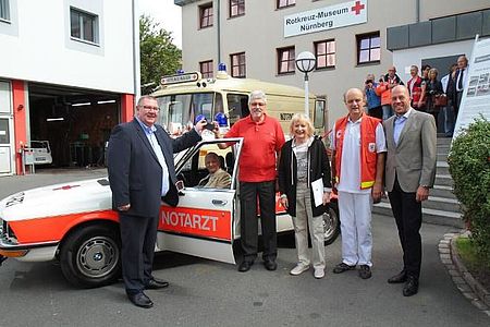 45 Jahre nach der Vorstellung des ersten Notarzteinsatzfahrzeugs Bayerns wurde dem Rotkreuz-Museum Nürnberg nun eine originalgetreue, fahrbereite Replik übergeben. Anlass dafür war das 35-jährige Bestehen des Museums, das eine der größten rotkreuzgeschichtlichen Sammlungen in Deutschland beherbergt.